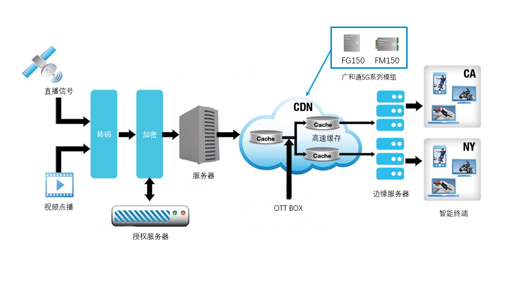 内置广和通5G无线通信模组的OTT盒子,能够为广大用户随时随地带来4K/8K流畅视频体验,结合AR/VR技术,用户足不出户可以享受无卡顿、低时延的5G云游戏沉浸式体验。广和通FG150/FM150是国内首家调通5G SA组网运营商现网的5G系列模组,产品特性如下: